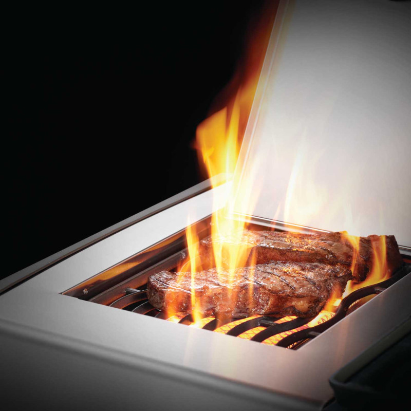 - Боковая инфракрасная горелка SIZZLE ZONE™ 24х37 см.