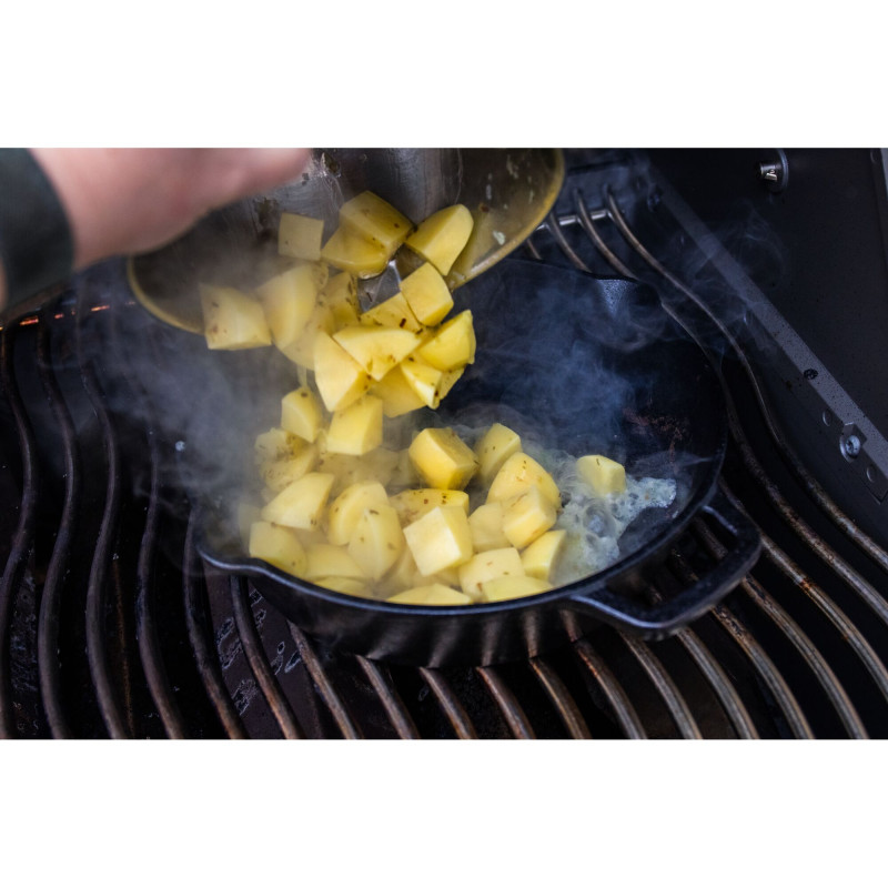Решетки для подогрева из нержавеющей стали. Разработана для большего места для приготовления пищи: большая подставка для подогрева из нержавеющей стали предлагает достаточно места для бережного приготовления или поддержания пищи в теплом состоянии. Будь то готовые блюда на гриле, запеченный картофель, багеты или рыбное филе – решетка для подогрева обеспечивает ценное пространство и превращается в дополнительный уровень для жарки. Еще одна особенность: когда она не используется, вы можете просто сложить решетку для подогрева вверх и закрепить ее в крышке гриля. Это избавляет вас от необходимости трогать горячую решетку и быстро освобождает больше места на поверхности гриля.