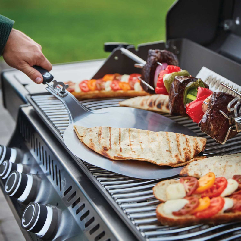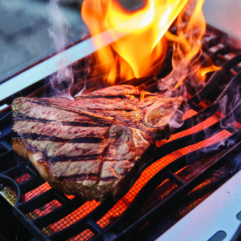 Основная жарочная решетка в камере гриля выполнена из нержавеющей стали, а решетка над боковой инфракрасной горелкой – из чугуна. Обе решетки эксклюзивной волнообразной формы WAVE™.