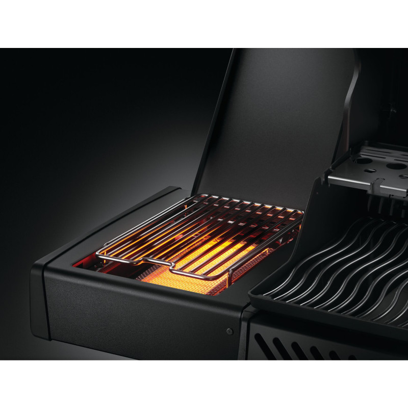 От нуля до 800°С за 30 секунд! С помощью инфракрасной зоны SIZZLE ZONE от Наполеона вы сможете придать своим стейкам и гамбургерам отличную корочку и отличный аромат жареной с помощью инфракрасной жары – всего за несколько секунд. Незаменимая функция для любителей мяса: плавно регулируемая боковая конфорка также может оптимально использоваться для приготовления хрустящих блюд в глаза, а также для приготовления гарниров и соусов. SIZZLE ZONE Phantom Rogue SE 425 оснащена регулируемой по высоте решеткой из нержавеющей стали, что позволяет легко и комфортно работать во всех диапазонах температур.