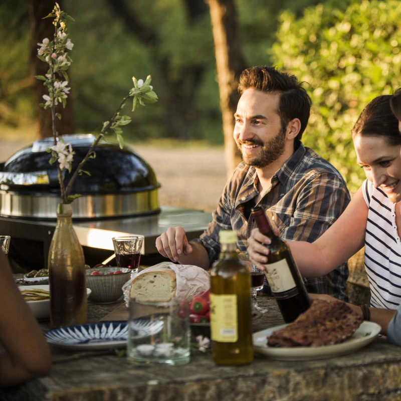 • Чугунная барбекю решетка Ø 57 см с поднимающимися боковинами для доступа к углю при косвенном методе приготовления.