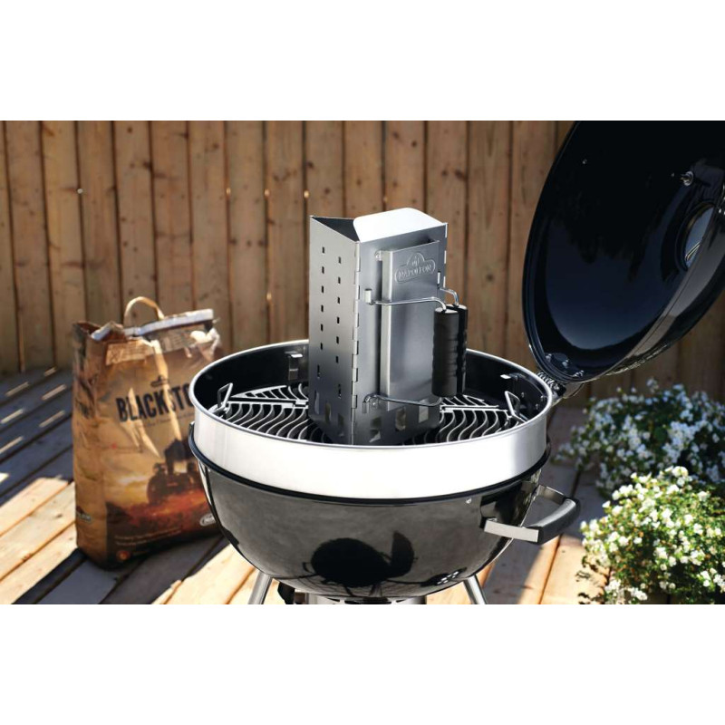 Наповніть стартер вугіллям або вугільними брикетами, помістіть його в гриль на нижню решітку над розпалами. Простежте за тим, щоб нижнє вугілля у стартері розгорілося від розпалів. Тепер у Вас є 15 хвилин часу, щоб зробити заготівлю для барбекю або поспілкуватися з друзями. Стартер подбає про готовність вугілля. Виготовлений з алюмінізованої сталі, що забезпечує міцність та легкість даного аксесуара. Зручна ручка із жаростійкого пластику з додатковим захистом від жару забезпечує безпеку використання.