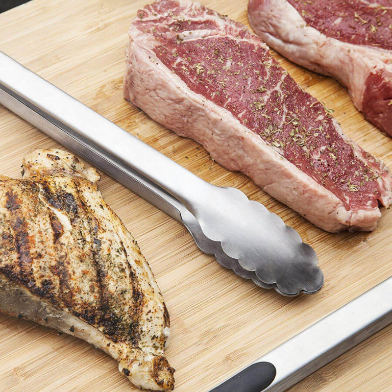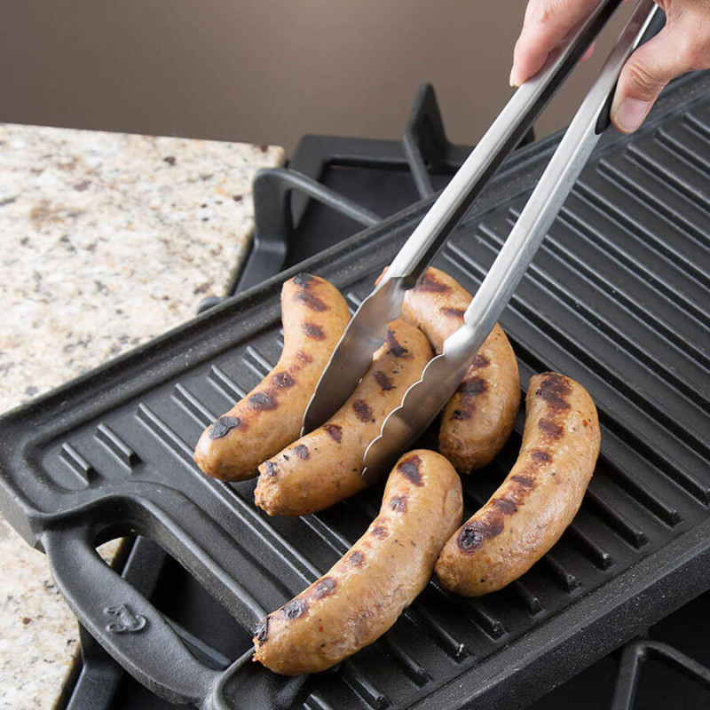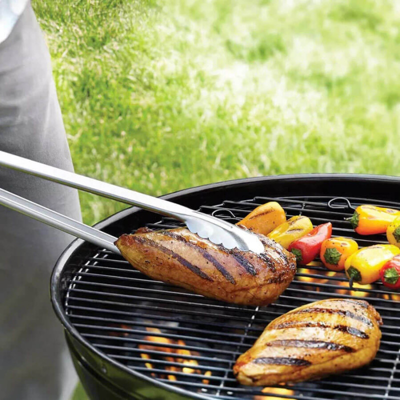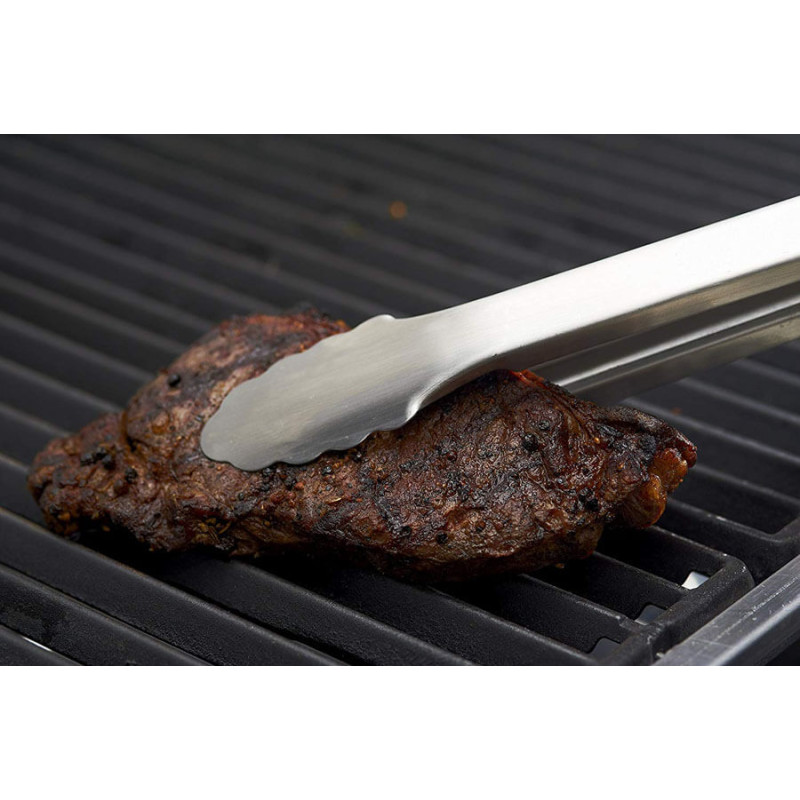 Опис За допомогою професійних щипців LoveGrill з нержавіючої сталі ви миттєво покладете, перевернете або дістанете страви, що приготовані в грилі. Щипці мають зручну протиковзну силіконову накладку на ручці. Блокуючий механізм також є гачком для підвішування.