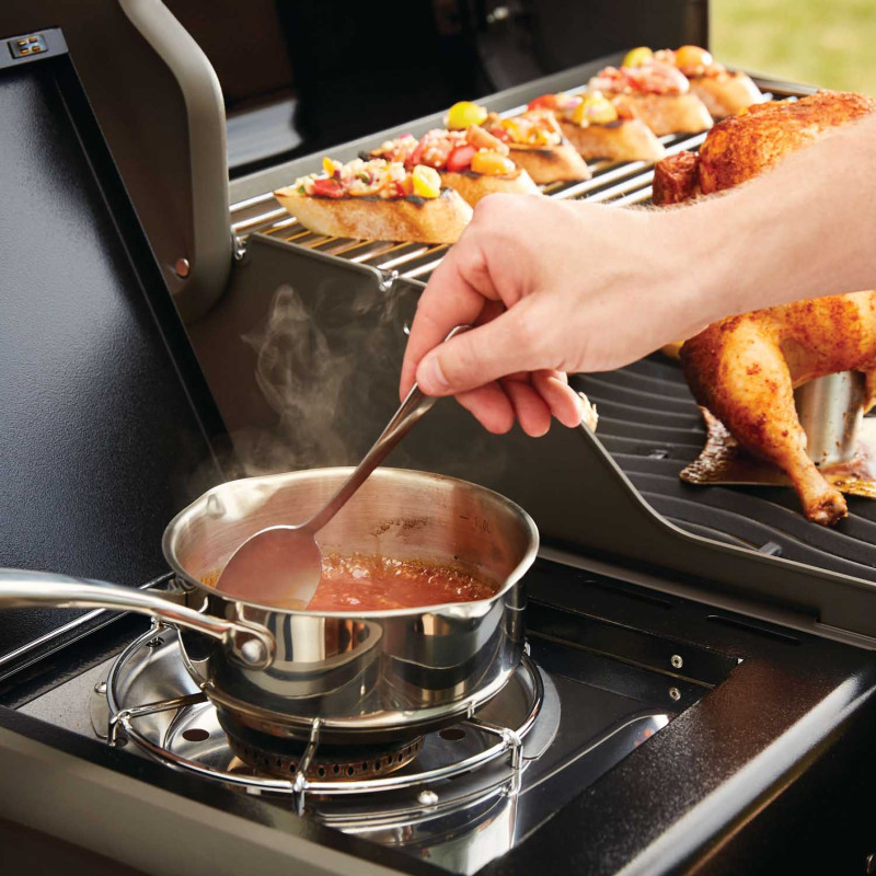 Газовий гриль Rogue 365 має стильну кришку, покриту чорною фарфоровою емаллю та нижню нішу для зберігання всього необхідного з одними дверцятами. З оновленим дизайном Ви зможете почати готувати набагато швидше, тому що час збирання гриля скорочено вдвічі. Ніша чудово підходить для зберігання газового балона і всього необхідного для грилінгу. Бічні полиці, що складаються, що дозволяє економити місце під час зберігання гриля.