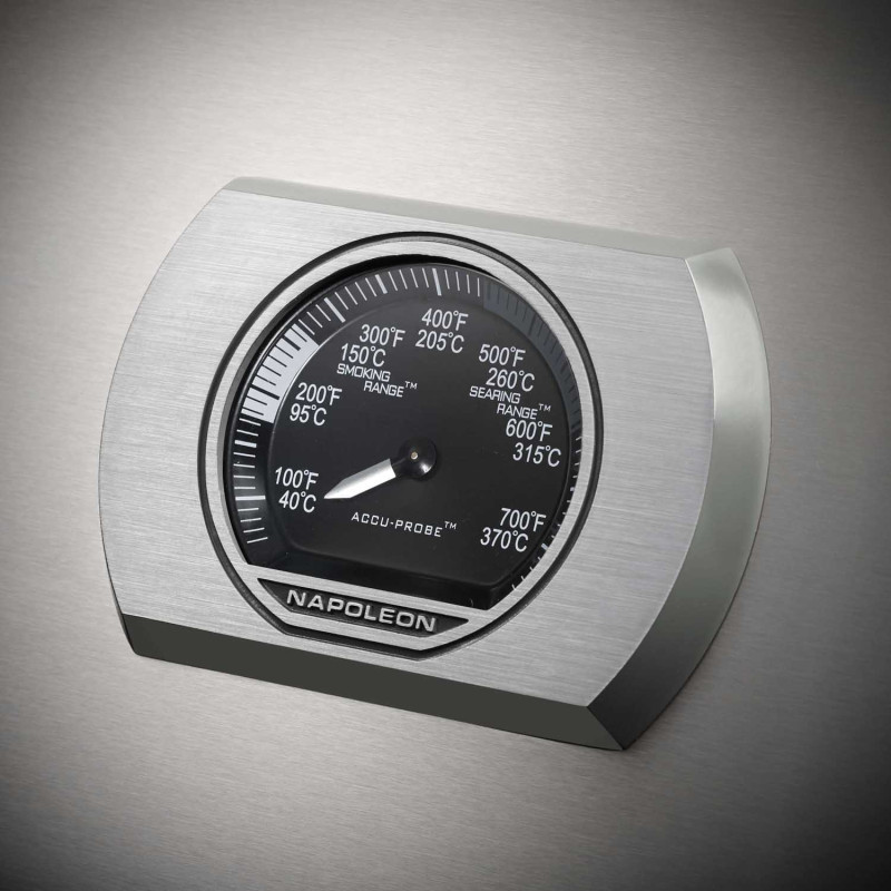 - кришка покрита чорною порцеляновою емаллю, одна дверцята, за якою є місце для зберігання всього необхідного; < li>датчик температури ACCU-PROBE™;