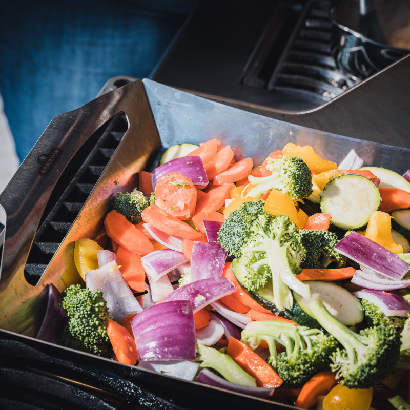 - барбекю решітки із чавуну форми WAVE™ та емальовані грати для розігріву;