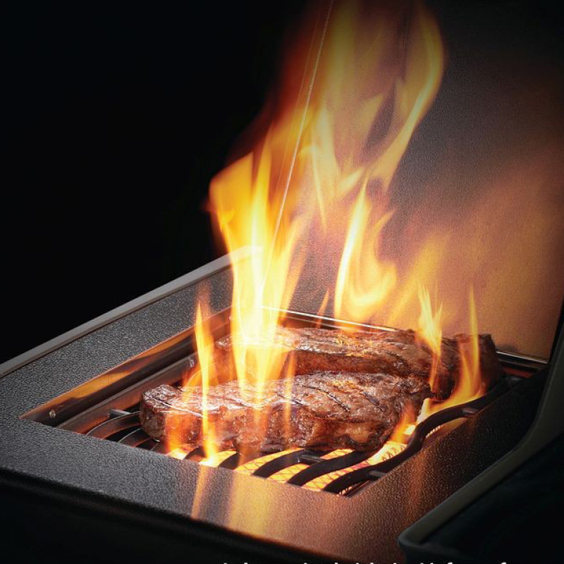 Головна перевага газового грилю Rogue XT525 – наявність бічного інфрачервоного керамічного пальника SIZZLE ZONE™, який менше, ніж за хвилину нагрівається до температури 800℃ і за допомогою якого Ви зможете готувати чудові стейки.