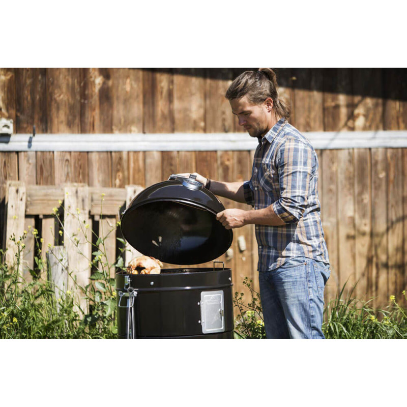 Потужний корпус із нержавіючої сталі з покриттям з фарфорової емалі відмінно утримує тепло. Він сконструйований таким чином, що в ньому оптимально циркулює ароматний дим від тріски і обволікає м'ясо, сир, рибу і все, що вам захочеться покоптити. . Відкриваєте їх – температура збільшується, закриваєте – зменшується. Вбудований термометр ACCU-PROBE™ завжди підкаже, який температурний режим усередині Napoleon Apollo AS200K. Дуже важливий момент полягає в тому, що вікна, що відкриваються, на різних рівнях коптильні дозволяють за допомогою дистанційного термометра (придбається окремо) більш точно контролювати температуру в камері. Адже від цього залежить правильність приготування та смак страви. У коптильні ще передбачений маленький отвір для дистанційного щупа. Коли жар знижується або ви розумієте, що недостатньо тріски, можна все додати через нижнє віконце. При цьому не потрібно відкривати кришку коптильні та порушувати циркуляцію жару та ароматного диму всередині неї.