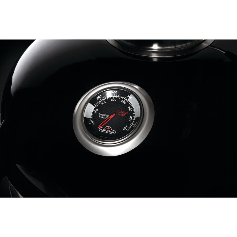 - Термометр на кришці. Допомагає точно відстежувати температуру всередині гриля Napoleon, що критично важливо для приготування різних страв.