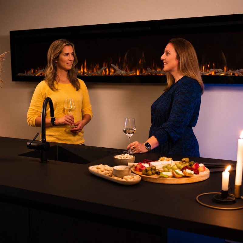 Основні характеристики. Маючи розміри 254 на 55 на 14 сантиметрів, електрокамін, що вбудовується в стіну, може монтуватися на стіну, що має вільний простір шириною 3-4,5 метра. Камін також характеризується: