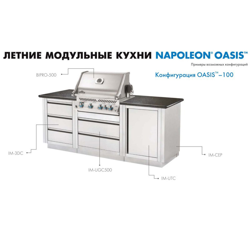 Конфігурація літньої вуличної кухні Napoleon Oasis-100 з грилем BIPRO 500 - OASIS-100-BIPRO-500